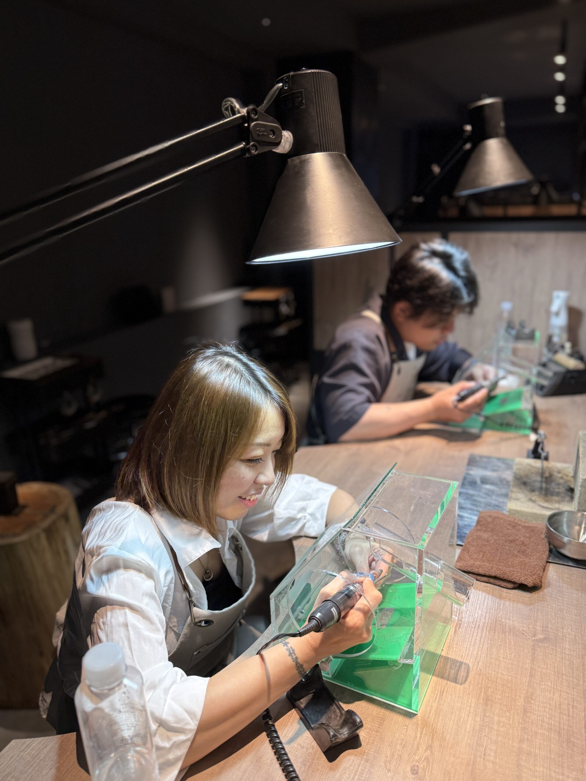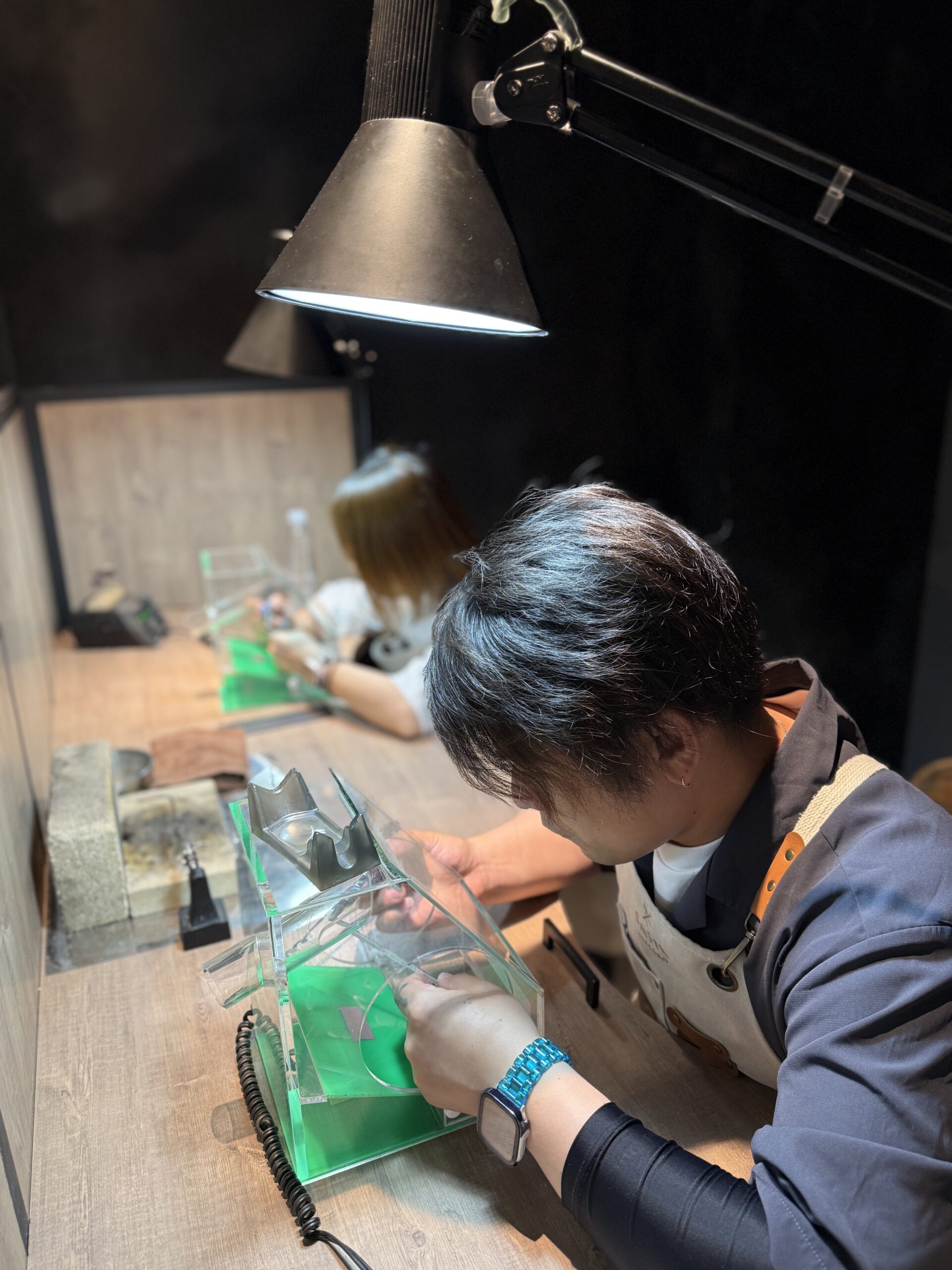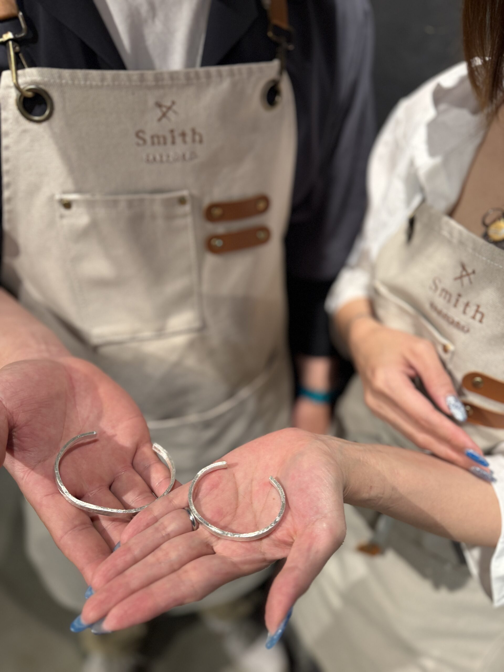 細かい作業を丁寧に進めていらっしゃる様子がとても印象的で、お二人のこだわりがしっかりと反映された素晴らしいバングルが完成しましたね。