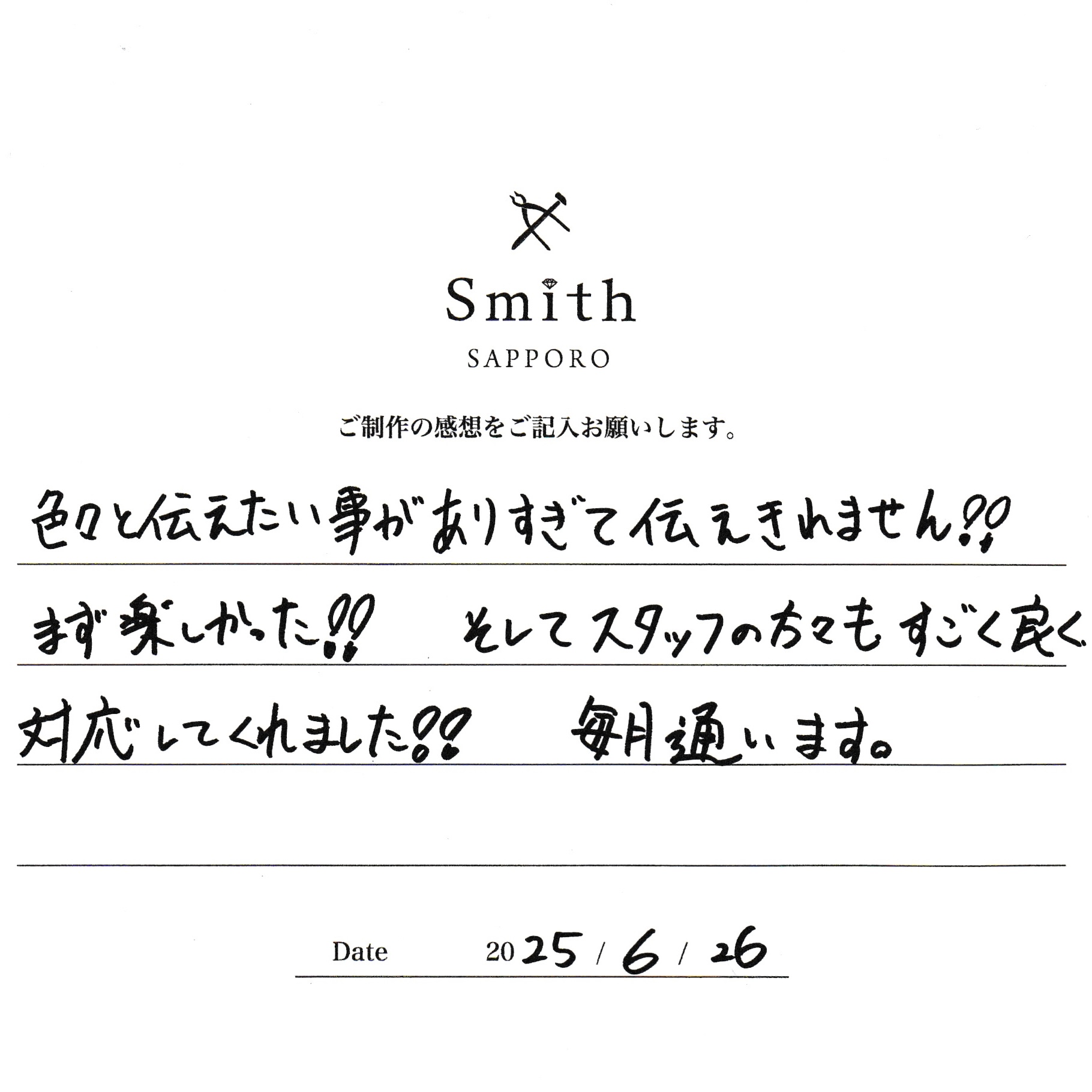 今後とも工房Smith札幌店をよろしくお願いいたします。