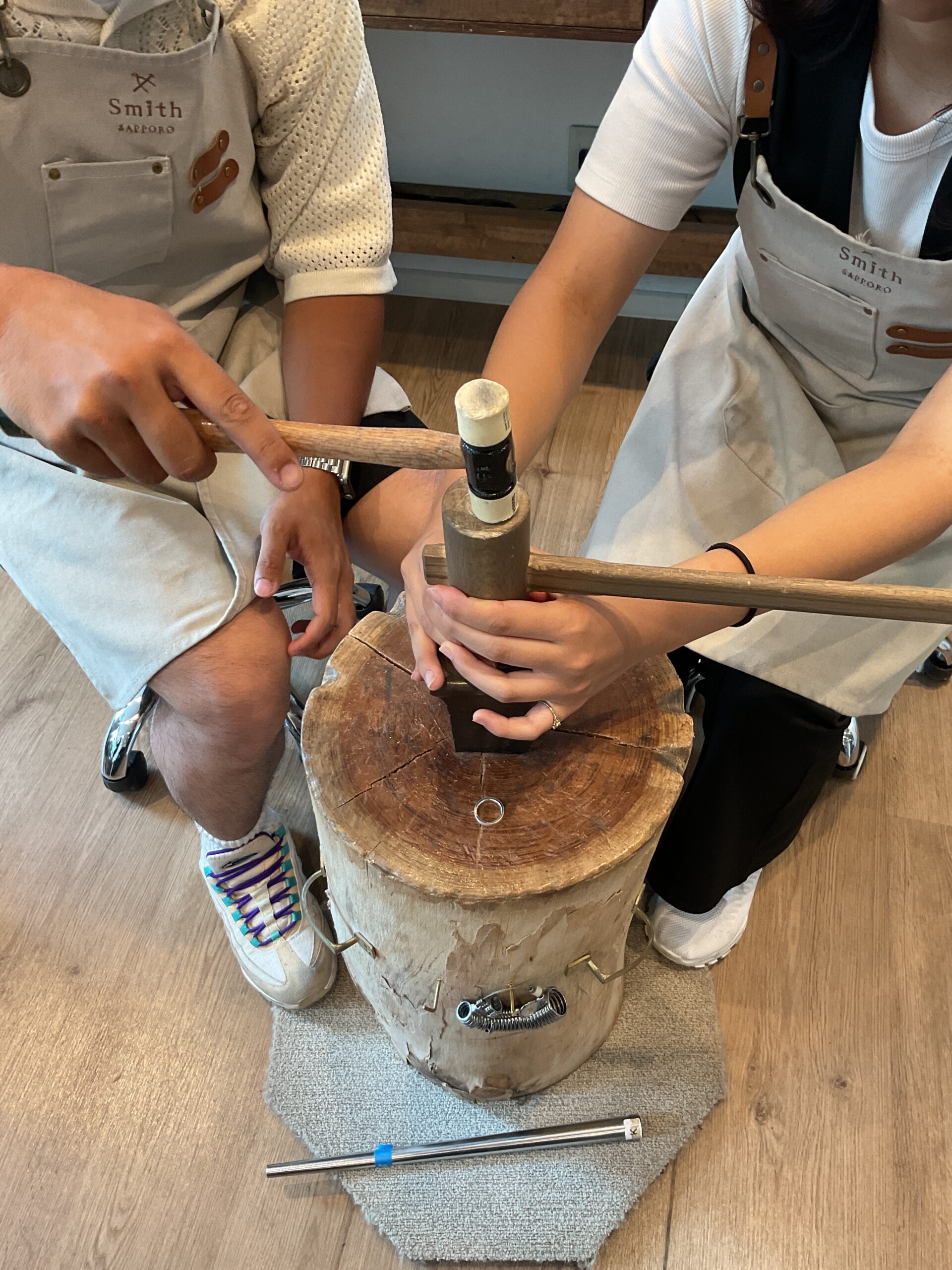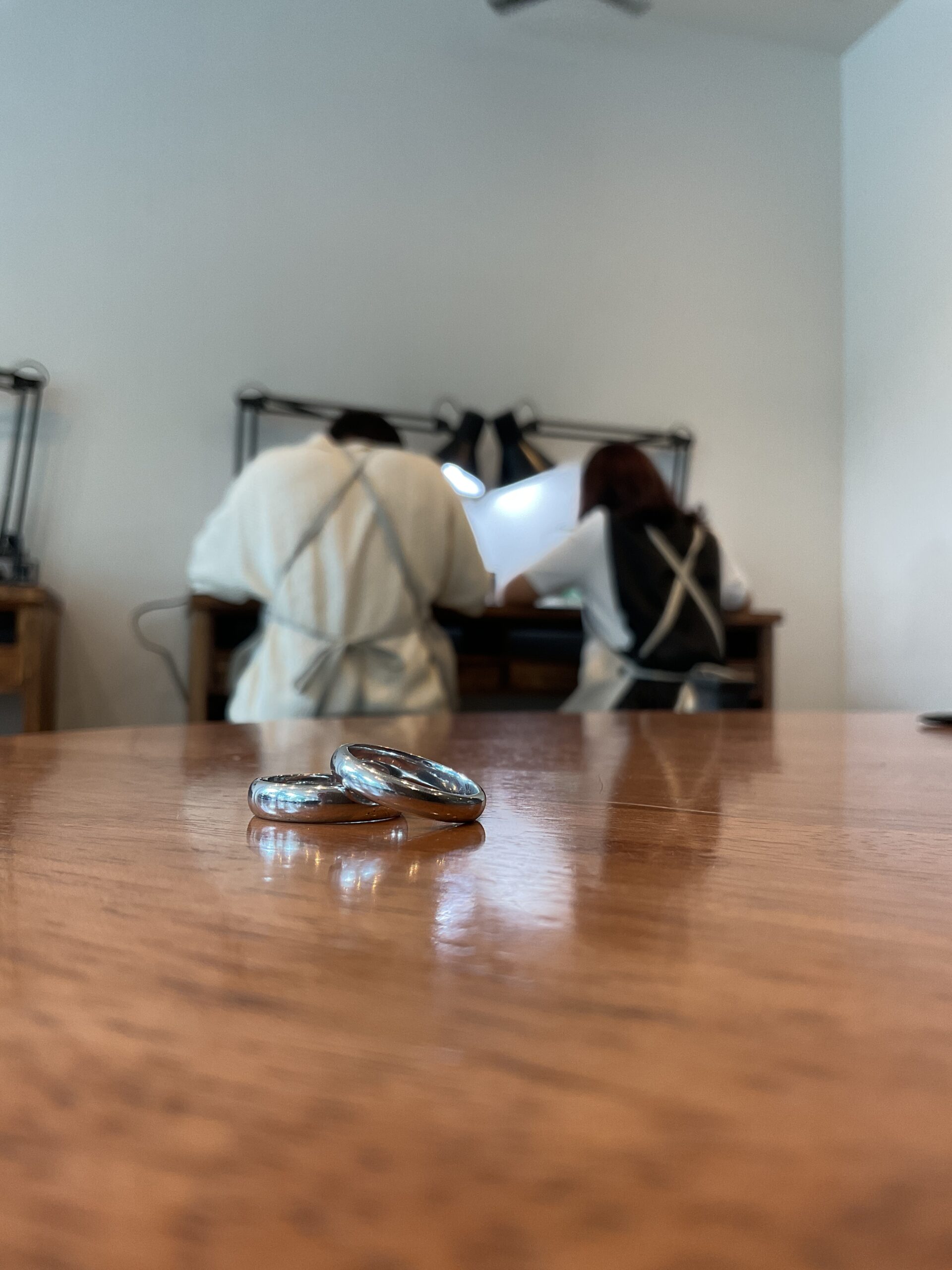 基本の形は3mmの甲丸、平打ちリングに、テクスチャーは鏡面をお選びいただきました。