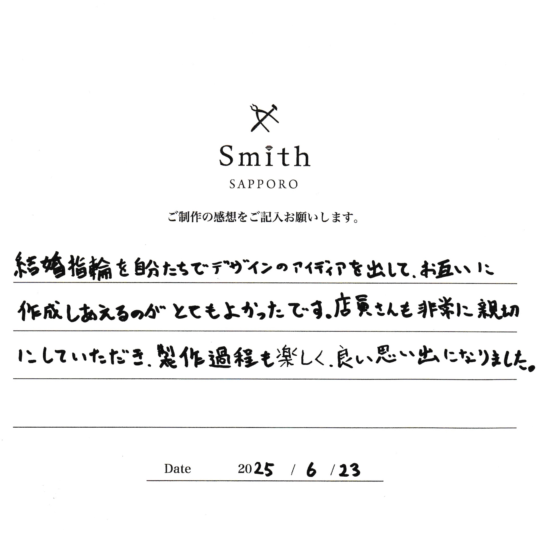 非常感謝您最近蒞臨本店為您打造手工訂婚戒指。