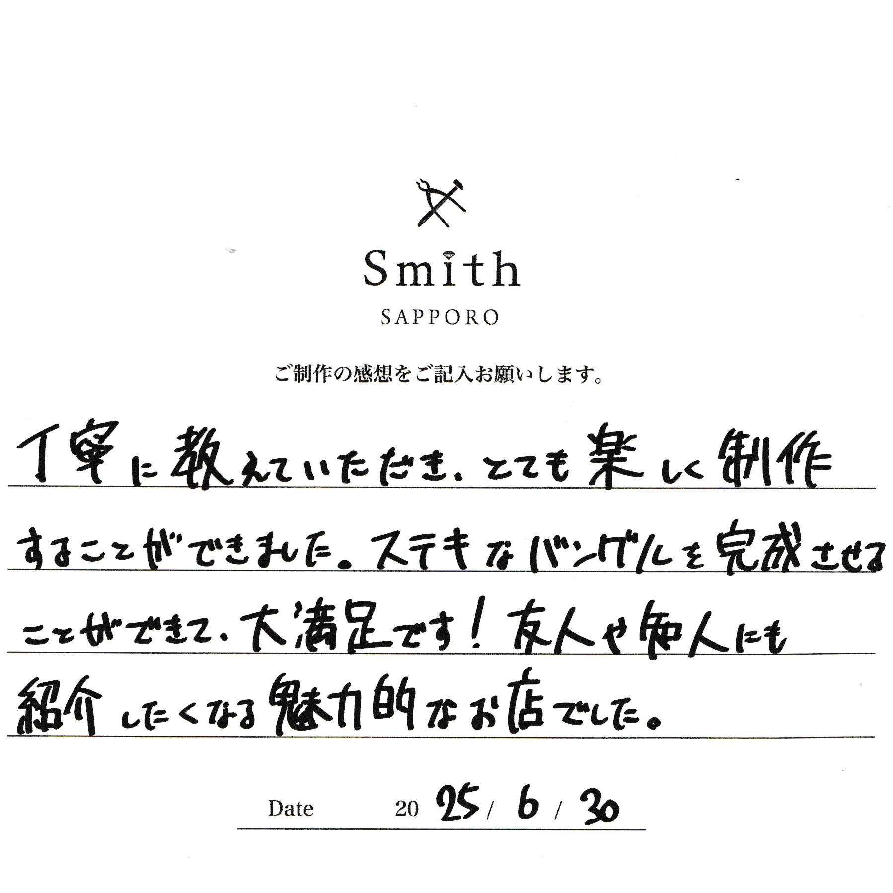 先日は手作りバングル制作にご来店いただきまして誠にありがとうございました。